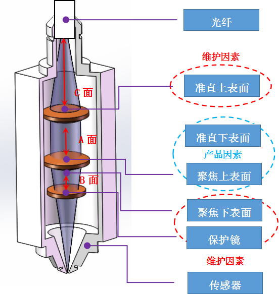 (2)使用非原廠配件、操作失誤或外圍設(shè)備導(dǎo)致保護(hù)鏡破裂或燒穿引起內(nèi)部鏡片污染,注意檢查輔助設(shè)備運(yùn)行是否正常,如比例閥,空壓機(jī)等。