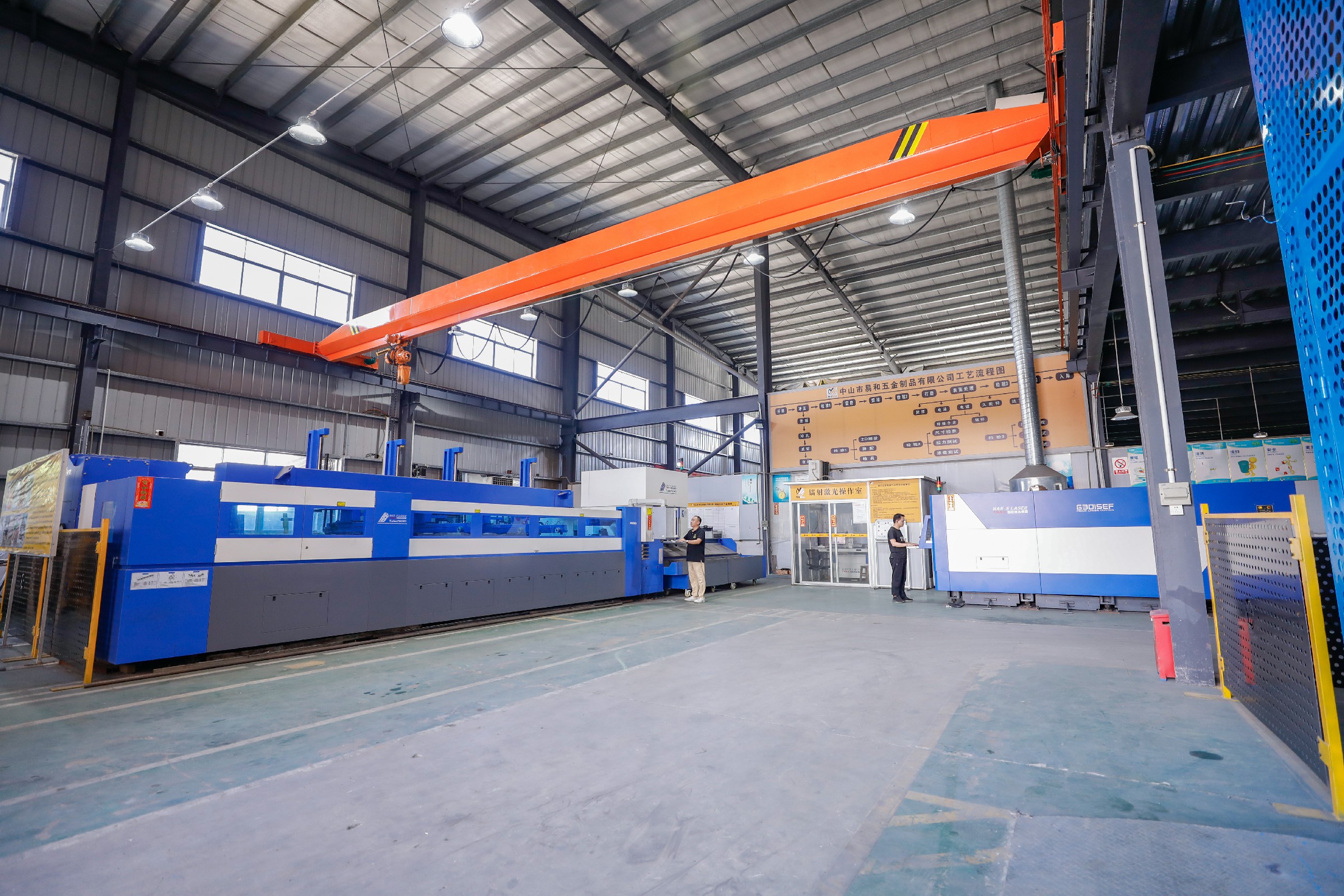 2019年,易和五金先后引進大族激光智能裝備集團P6018D光纖激光切管機、G3015F光纖激光切割機,不僅解決了企業(yè)多品類、小批量的訂單交期問題,而且為公司定制化工程項目提供了有力的支持,打造具有自身特色的智能生產鏈,有效地提升產品質量與效率,更好地滿足需要、服務市場、擴寬業(yè)務。