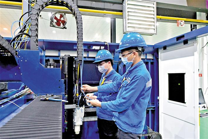 聽!大族激光智能裝備集團(tuán)全國各地生產(chǎn)車間的機(jī)器轟隆聲回蕩著,生產(chǎn)車間馬力全開、各種零件錯(cuò)落有致,工程師們或凝神工作或步履匆匆,處處是一片熱火朝天的景象。