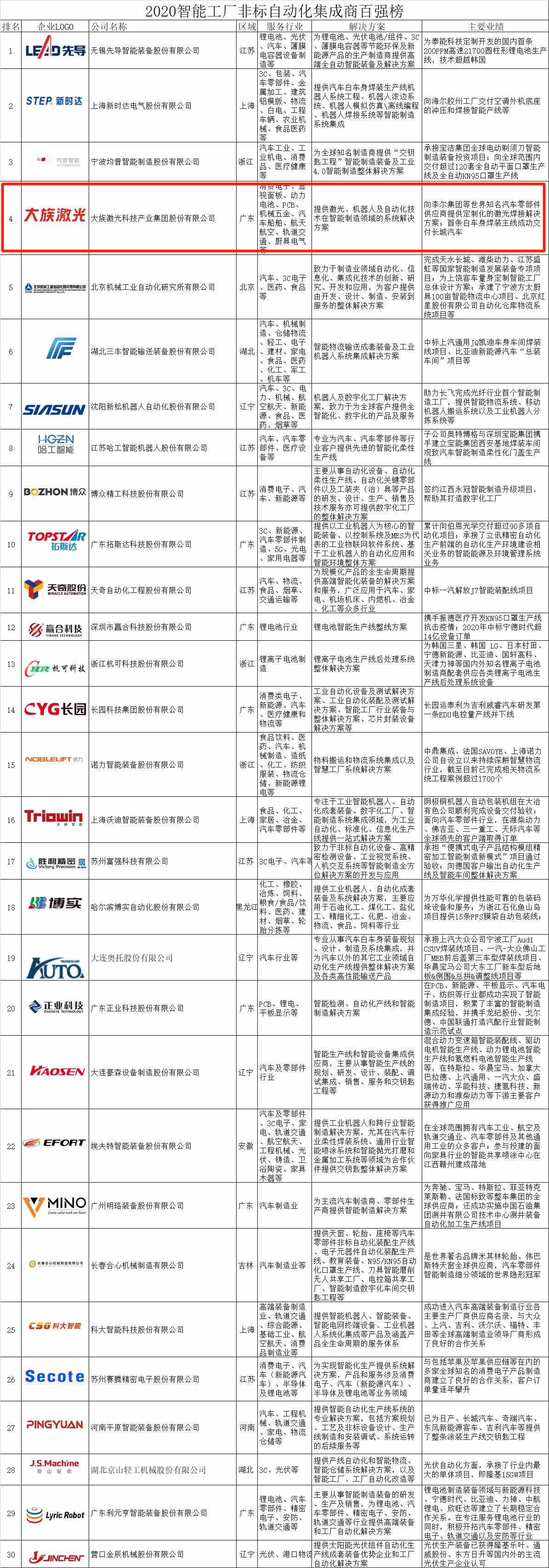 400-666-4000 2021開年之際,e-works在調(diào)研分析了國內(nèi)數(shù)百家智能工廠非標(biāo)自動化系統(tǒng)集成商,搜集了眾多行業(yè)典型案例的基礎(chǔ)上,正式發(fā)布《2020中國智能工廠非標(biāo)自動化集成商百強(qiáng)榜》。
