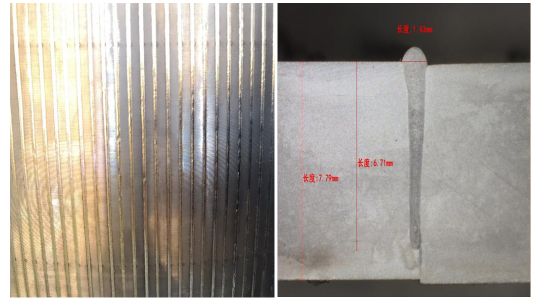 5.工藝性能好。大族激光開發(fā)的焊接工藝很好地解決了大型薄壁工件超密集焊縫焊接形變問題,工藝過程穩(wěn)定可靠;環(huán)形拼接焊縫:8mm厚GH4169&鎳焊透,起弧收弧平順,無明顯凹痕,單面焊接雙面成型,兼顧產(chǎn)品的強(qiáng)度與氣密性要求??蛇m應(yīng)各類不銹鋼、高溫合金、銅合金、銅-鋼異種金屬、高溫合金-不銹鋼異種金屬焊接。