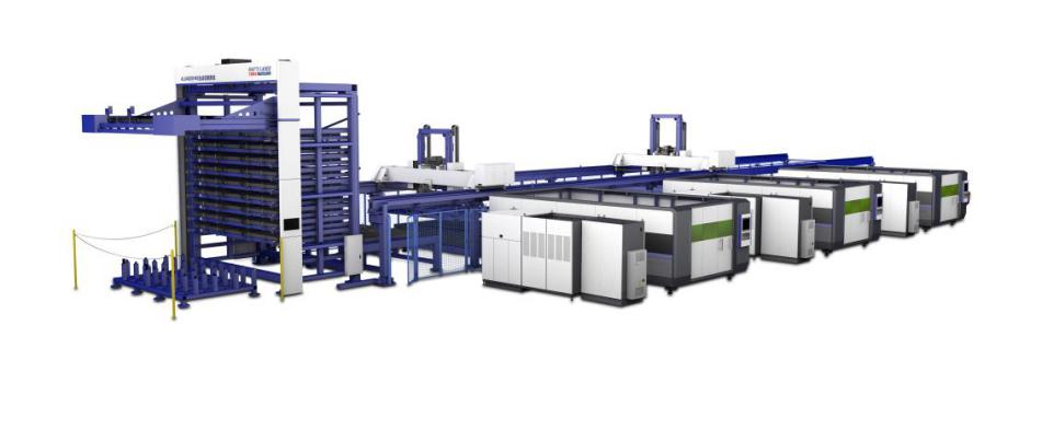 FMS激光切割柔性生產(chǎn)線主要由計算機CAD /CAM編程系統(tǒng)、10層立體倉庫、物流系統(tǒng)、自動上下料系統(tǒng)、多臺平面激光切割機系統(tǒng)、成品分揀臺系統(tǒng)組成,可以實現(xiàn)從上料到切割再到分揀成品的全過程無人化自動操作,切實滿足了用戶高效率、高智能、高柔性、低成本的生產(chǎn)要求。
