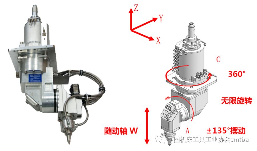 精密的光學(xué)計算,制定系統(tǒng)幾何的空間算法,研制360°無線旋轉(zhuǎn)三維切割頭,自主創(chuàng)新,擁有核心技術(shù),是繼國外三家企業(yè)后,第四家能夠生產(chǎn)360°無線旋轉(zhuǎn)三維切割頭的廠家,打破了國外技術(shù)壟斷。360°無線旋轉(zhuǎn)三維五軸切割頭如圖6所示。
