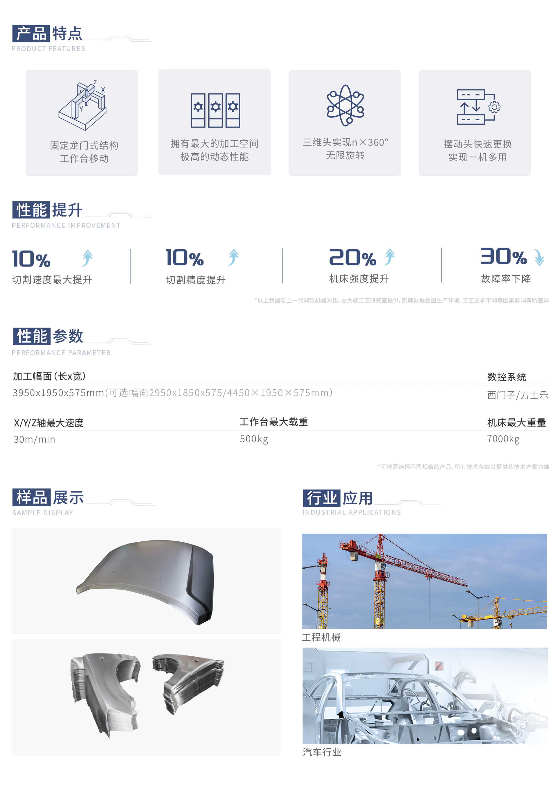 該系列產品專為汽車行業(yè)熱成型件激光切割量身定制,設備性能穩(wěn)定,加工一次成型。