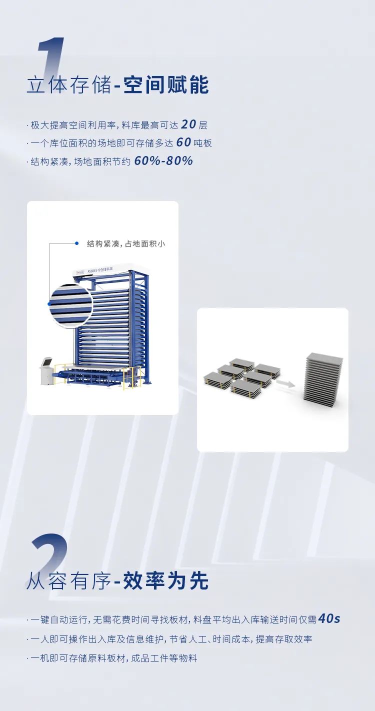 集自動(dòng)存取和庫存管理于一體,擊破電梯、廚具、家電、個(gè)體加工等行業(yè)板材存儲(chǔ)占地面積大、存取不便、管理混亂的痛點(diǎn)