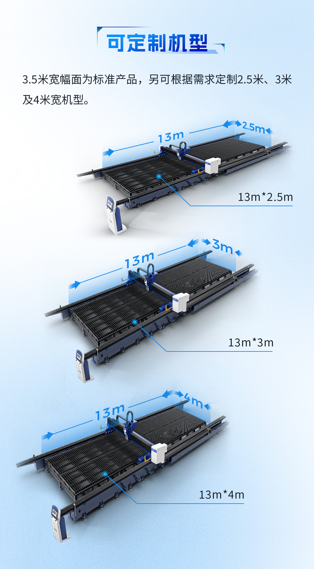 大幅面鋼結(jié)構(gòu)專(zhuān)用光纖激光切割機(jī),一體化線軌底座,行程大余量設(shè)計(jì),配備自適應(yīng)橫梁高精度加工,模塊化設(shè)計(jì),超快交付。